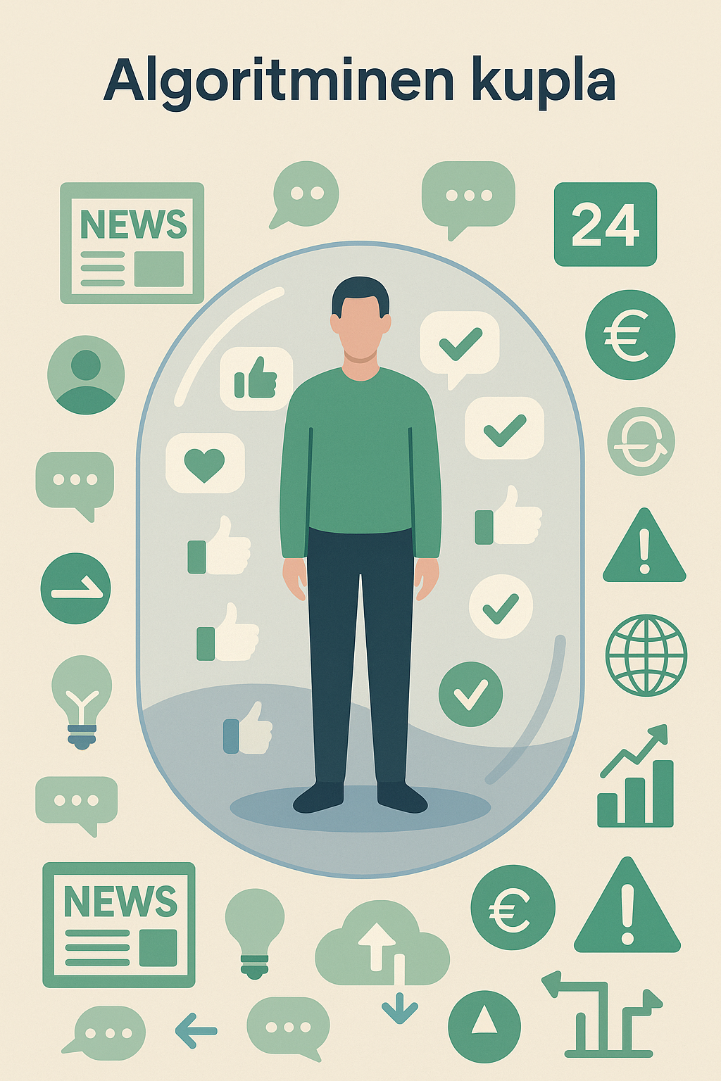 Demokratia edellyttää vapaita päätöksiä ja yhteistä julkista keskustelua. Algoritmit suodattavat tietoa siten, että kansalainen kohtaa lähinnä omia ennakkokäsityksiään vahvistavia sisältöjä. Näin syntyy algoritminen kupla, jossa yhteinen todellisuus hajoaa ja polarisaatio syvenee.