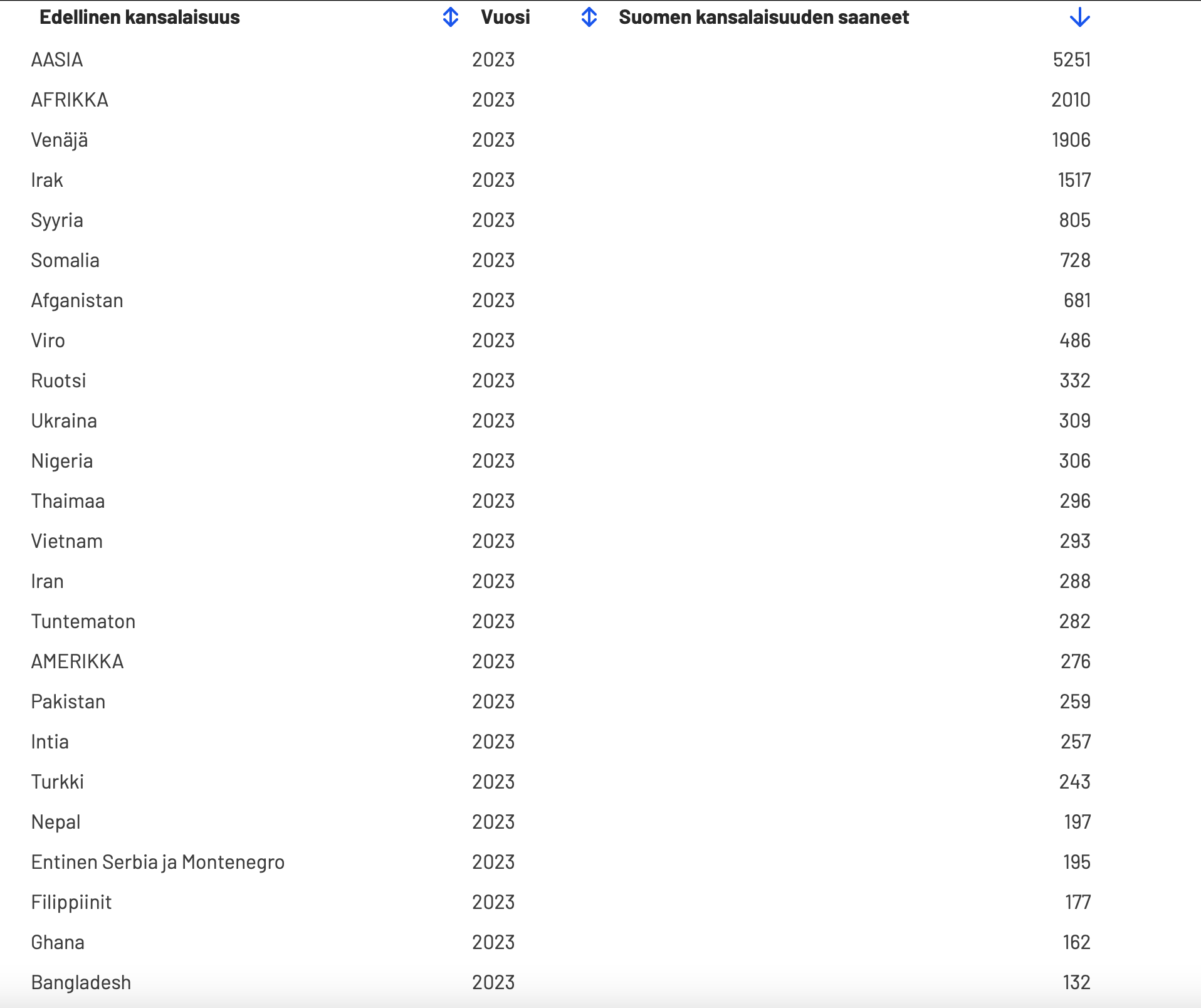 Suomen kansalaisuuksien myöntämisen suhteet maittain verrattuna maahanmuuttajien määrään on helposti laskettavissa. Vallassa oleva Suomen Hallitus suunnittelee erilaisia tiukennuksia kansalaisuuden myöntämiselle.
