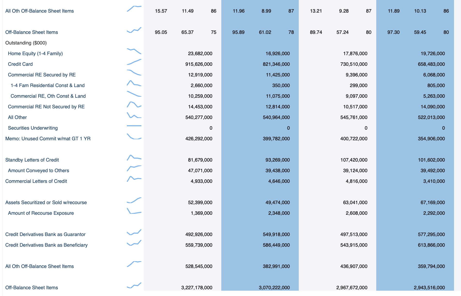 Securities and Exchange Commissionille 31. joulukuuta 2023 päättynyttä ajanjaksoa koskevassa julkisessa 10-K-ilmoituksessaan JPMorgan Chase ilmoitti taseensa kokonaisvarallisuudeksi 3,875 biljoonaa dollaria. Tämä luku poikkeaa FFIEC:n tiedoista, joiden mukaan taseen ulkopuolella olevien varojen kokonaismäärä on 3,227 biljoonaa dollaria.
