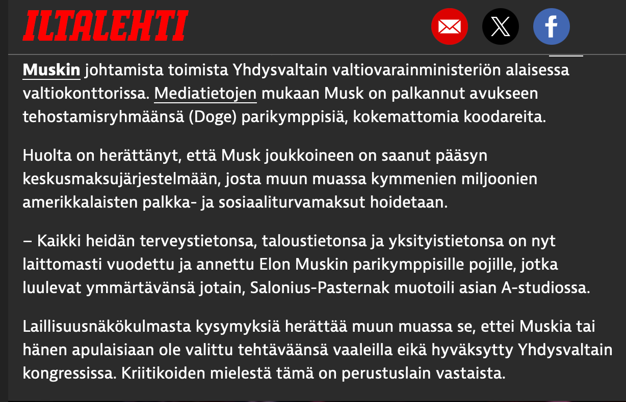 Iltalehti mainitsi jutussaan 7.2.2025 seuraavasti: