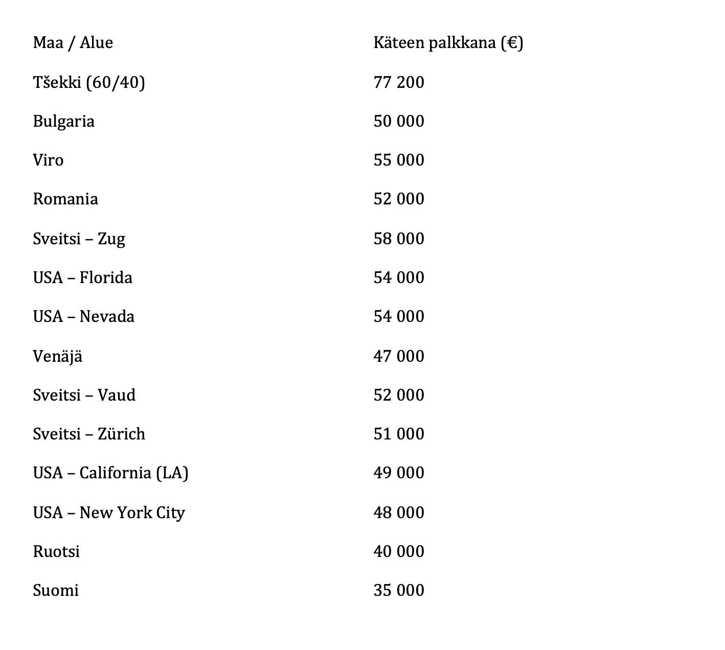 HUOM! Maailmassa on myös maita, joissa ei ole tuloveroja ollenkaan sekä paljon maita missä on könttäsummaverotus. Eli maksat saman summan veroa riippumatta siitä mitä ansaitset.